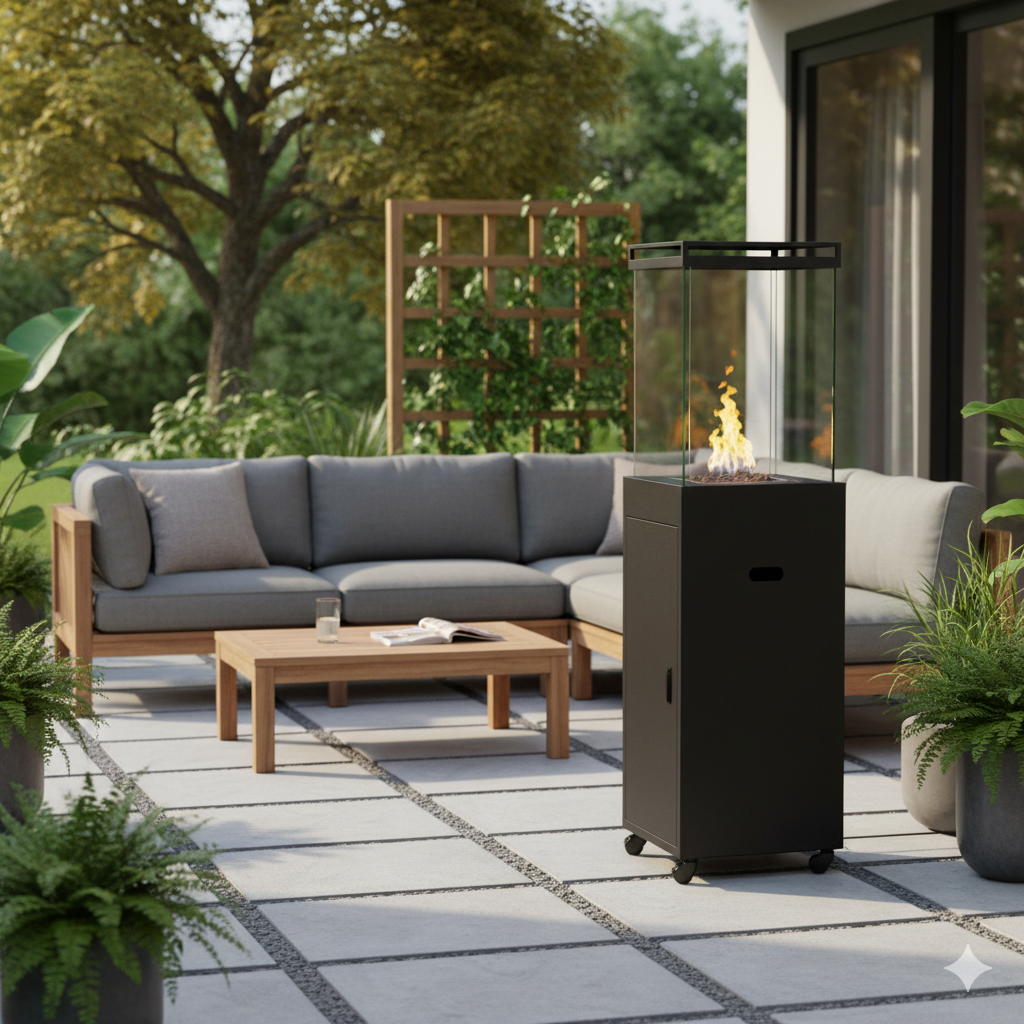 Stufa a Camino a Gas GPL da Esterno – Altezza Ridotta 1,52 m Ideale per verande, gazebo e coperture basse Questa stufa a caminetto alimentata a gas...